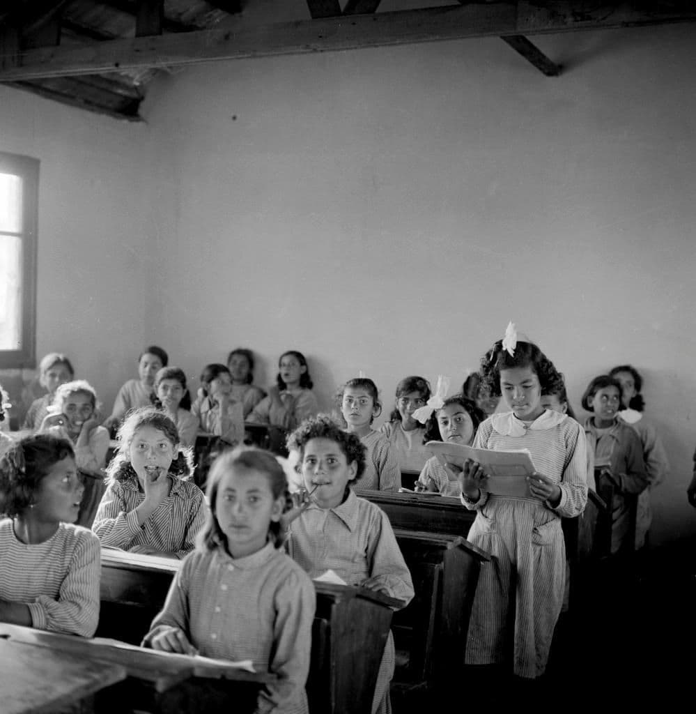 Primary school girls in a classroom as part of UNRWA’s educational program. Gaza Strip, April-May 1957.
